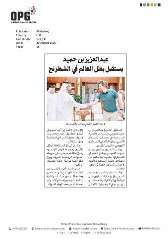 Publication: Al Khaleej Country: UAE Circulation: 121,141 Date: 30 August 2025 Page: 16