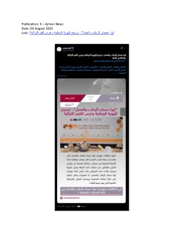 Publication: X – Ajman News Date: 04 August 2025 Link: " ةيثارتلا ميقلل سرغو ةينطولا ةيوهلل خيسرت .."لسعلاو بطرلل نامجع اويل