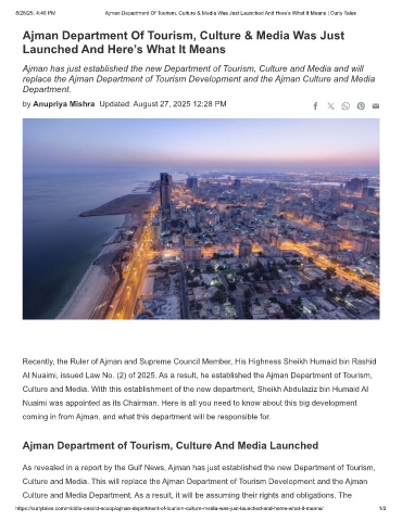 8/28/25, 4:46 PM Ajman Department Of Tourism, Culture & Media Was Just Launched And Here’s What It Means | Curly Tales