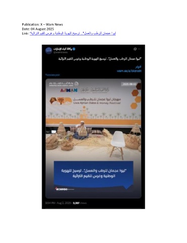 Publication: X – Wam News Date: 04 August 2025 Link: " ةيثارتلا ميقلل سرغو ةينطولا ةيوهلل خيسرت .."لسعلاو بطرلل نامجع اويل