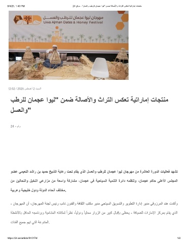 8/4/25, 1:40 PM 24 ﻊﻗوﻣ - "لﺳﻌﻟاو بطرﻠﻟ نﺎﻣﺟﻋ اوﯾﻟ" نﻣﺿ ﺔﻟﺎﺻﻷاو ثارﺗﻟا سﻛﻌﺗ ﺔﯾﺗارﺎﻣإ تﺎﺟﺗﻧﻣ