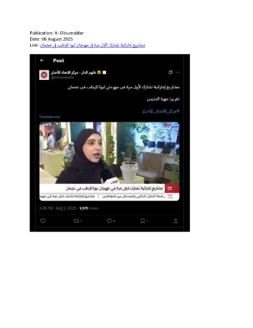 Publication: X- Oloumaldar Date: 06 August 2025 Link: نامجع ف بطرلل اويل ناجرهم ف ةرم لولأ كراشت ةيتارامإ ع يراشم ي ي