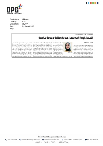 Publication: Al Bayan Country: UAE Circulation: 88,000 Date: 04 August 2025 Page: 7
