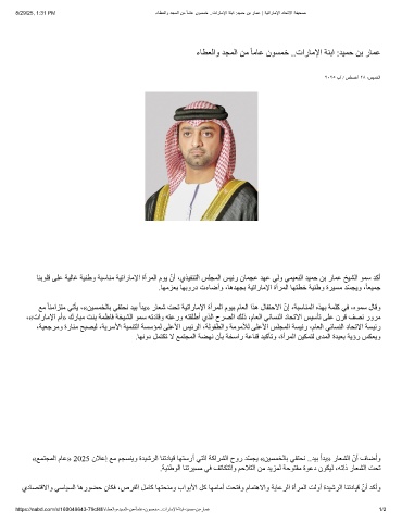 8/29/25, 1:31 PM ءﺎطﻌﻟاو دﺟﻣﻟا نﻣ ً ﺎﻣﺎﻋ نوﺳﻣﺧ ..تارﺎﻣﻹا ﺔﻧﺑا :دﯾﻣﺣ نﺑ رﺎﻣﻋ | ﺔﯾﺗارﺎﻣﻹا دﺎﺣﺗﻻا ﺔﻔﯾﺣﺻ