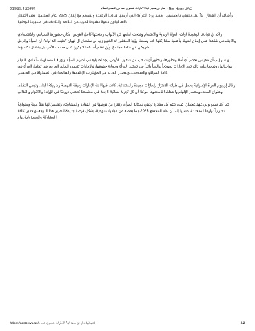 ،مﺪﻘﺘﻟا ﺾﺒﻧو ،ءﺎﻨﺒﻟا ﺔﻜﻳرشو ﺔﻀﻬﻨﻟا ﺔﻘﻴﻓر تارﺎﻣإلا ﺔﻨﺑا ﺎﻬﻴﻓ ﺖﻧﺎﻛ ،ﺔﻴﺋﺎﻨﺜﺘﺳاو ةﺪﻴﺠﻣ تازﺎﺠﻧﺈﺑ زاﺰﺘﻋالا ﻪﺗﺎﻴﻃ ﻲﻓ ﻞﻤﺤﻳ ﺔﻴﺗارﺎﻣإلا ةأﺮﻤﻟا مﻮﻳ نإ لﺎﻗو