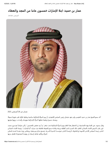 8/29/25, 1:28 PM ءﺎطﻌﻟاو دﺟﻣﻟا نﻣ ﺎﻣﺎﻋ نوﺳﻣﺧ تارﺎﻣﻹا ﺔﻧﺑا :دﯾﻣﺣ نﺑ رﺎﻣﻋ - Nas News UAE