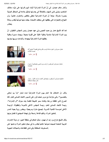 فﻠﺗﺧﻣ ء ﱡ وَﺑﺗ ﻰﻠﻋ ﺎﮭﺗردﻗ موﯾﻟا تﺗﺑﺛأ ﺔﯾﺗارﺎﻣﻹا ةأرﻣﻟا ّنأ ﻰﻟإ ،نﺎﻣﺟﻋ مﻛﺎﺣ رﺎﺷأو