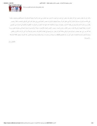 ﺔﻛرﺎﺷﻣﻟا ﺔﻓﺎﻘﺛ رﯾذﺟﺗو ،ﮫﺟوﺗﻟا اذھ زﯾزﻌﺗﻟ ةدﯾدﺟ ﺔﺻرﻓ لﻛﺷﯾ ،ﺔﯾﻋوﻧ تاردﺎﺑﻣ نﻣ ﮫﻠﻣﺣﯾ ﺎﻣﺑ ،2025 ﻊﻣﺗﺟﻣﻟا مﺎﻋ نأ ﻰﻟإ ًارﯾﺷﻣ ،ةددﻌﺗﻣﻟا ﺎھراودأ مرﺗﺣﺗ ً ﺔﻧزاوﺗﻣو