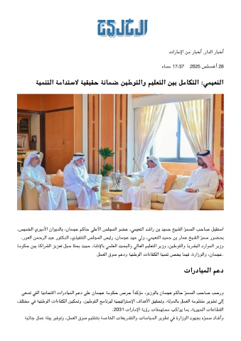 ﻞﻤﻌﻟا قﻮﺳ ﻢﻋدو ﺔﻴﻨﻃﻮﻟا تاءﺎﻔﻟا ﺔﻴﻤﻨﺗ ﺺﺨﻳ ﺎﻤﻴﻓ ،ةرازﻮﻟاو ،نﺎﻤﺠﻋ.
