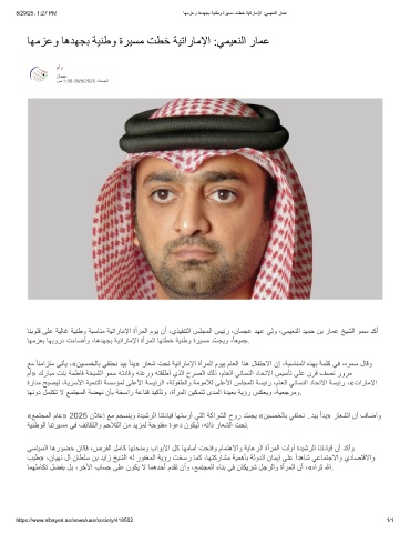 8/29/25, 1:27 PM ﺎﮭﻣزﻋو ﺎھدﮭﺟﺑ ﺔﯾﻧطو ةرﯾﺳﻣ تطﺧ ﺔﯾﺗارﺎﻣﻹا :ﻲﻣﯾﻌﻧﻟا رﺎﻣﻋ