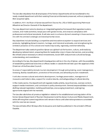 According to the law, the department’s headquarters will be in the city of Ajman, with the possibility