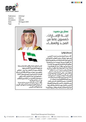 Publication: Al Etihad Country: UAE Circulation: 109,640 Date: 29 August 2025 Page: 6