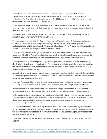 former Ajman Department of Tourism Development and the Ajman Culture and Media Department,