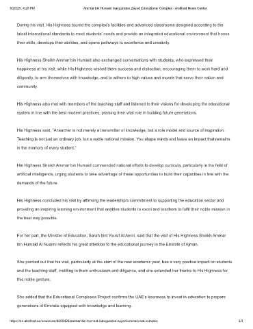 8/26/25, 4:26 PM Ammar bin Humaid inaugurates Zayed Educational Complex - Aletihad News Center