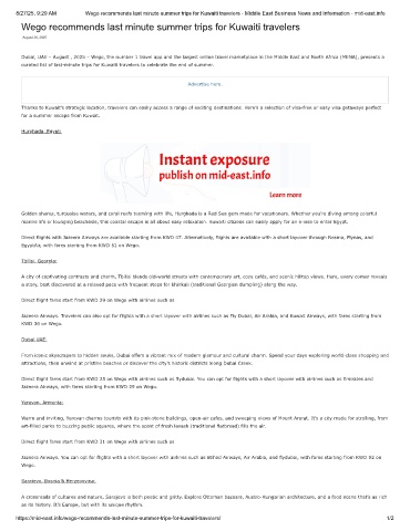 8/27/25, 9:29 AM Wego recommends last minute summer trips for Kuwaiti travelers - Middle East Business News and Information - mid-east.info