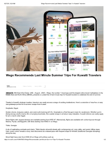 https://menafn.com/1109978551/Wego-Recommends-Last-Minute-Summer-Trips-For-Kuwaiti-Travelers 1/2