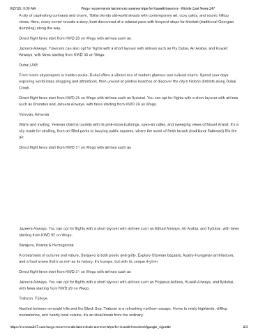 8/27/25, 9:30 AM Wego recommends last minute summer trips for Kuwaiti travelers - Middle East News 247