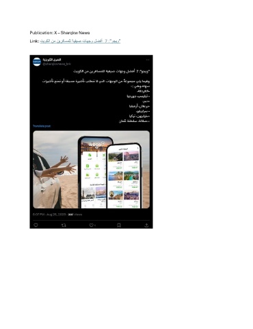 Publication: X – Sharqkw News Link: تﯾوﻛﻟا نﻣ نﯾرﻓﺎﺳﻣﻠﻟ ﺔﯾﻔﯾﺻ تﺎﮭﺟو لﺿﻓأ 7 :"وﺟﯾو"