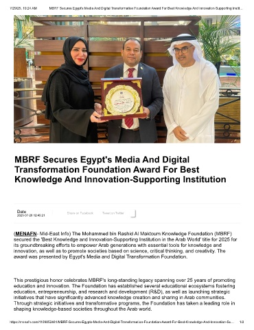https://menafn.com/1109852481/MBRF-Secures-Egypts-Media-And-Digital-Transformation-Foundation-Award-For-Best-Knowledge-And-Innovation-Su… 1/2