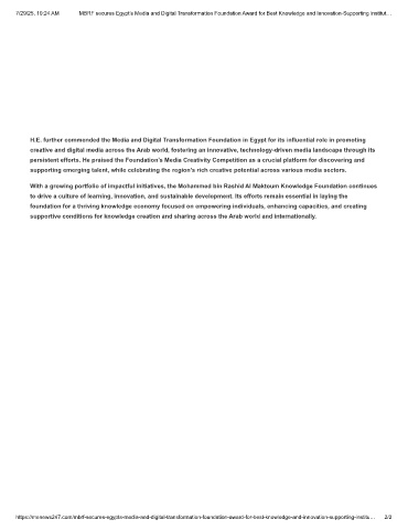 7/29/25, 10:24 AM MBRF secures Egypt’s Media and Digital Transformation Foundation Award for Best Knowledge and Innovation-Supporting Institut…