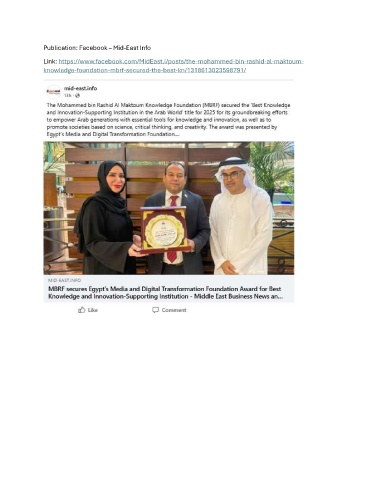 Publication: Facebook – Mid-East Info Link: https://www.facebook.com/MidEast.i/posts/the-mohammed-bin-rashid-al-maktoum- knowledge-foundation-mbrf-secured-the-best-kn/1318613023598791/