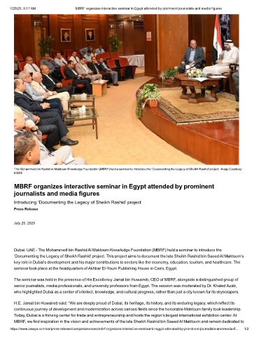 7/28/25, 9:17 AM MBRF organizes interactive seminar in Egypt attended by prominent journalists and media figures
