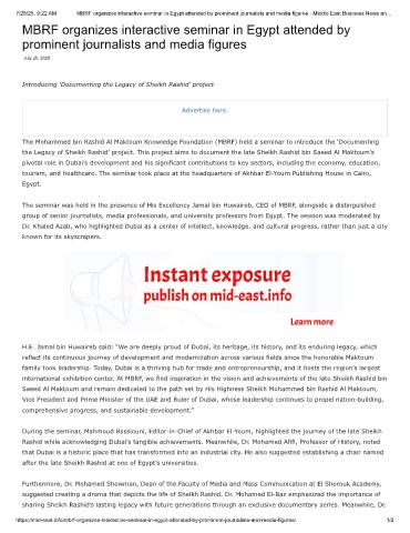 7/28/25, 9:22 AM MBRF organizes interactive seminar in Egypt attended by prominent journalists and media figures - Middle East Business News an…