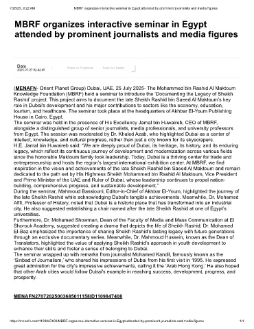 7/28/25, 9:22 AM MBRF organizes interactive seminar in Egypt attended by prominent journalists and media figures