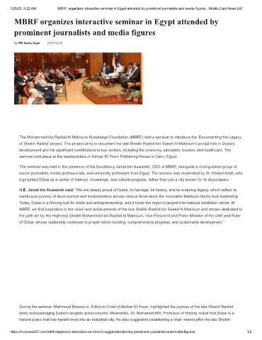 7/28/25, 9:22 AM MBRF organizes interactive seminar in Egypt attended by prominent journalists and media figures - Middle East News 247