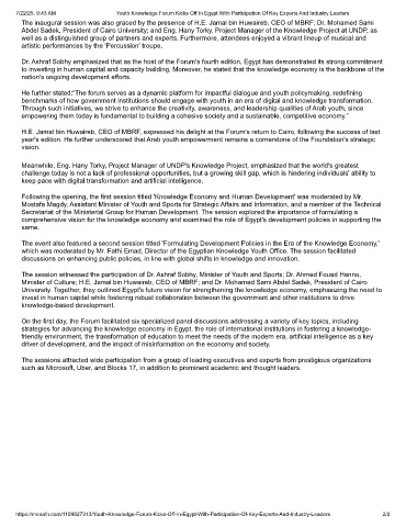 7/22/25, 9:43 AM Youth Knowledge Forum Kicks Off In Egypt With Participation Of Key Experts And Industry Leaders