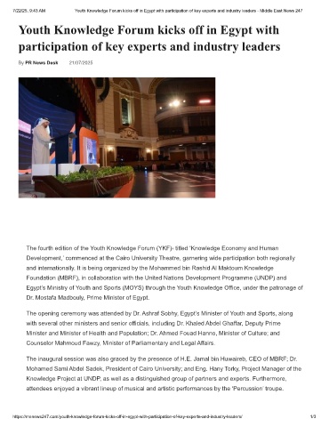 7/22/25, 9:43 AM Youth Knowledge Forum kicks off in Egypt with participation of key experts and industry leaders - Middle East News 247