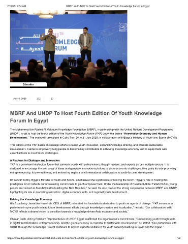 https://www.dayofdubai.com/news/mbrf-and-undp-to-host-fourth-edition-of-youth-knowledge-forum-in-egypt        1/2