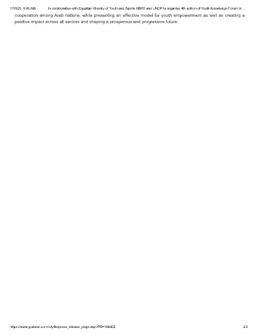 7/16/25, 9:40 AM In collaboration with Egyptian Ministry of Youth and Sports MBRF and UNDP to organise 4th edition of Youth Knowledge Forum in …
