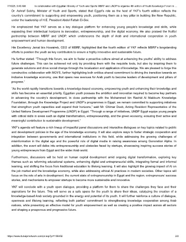 7/16/25, 9:40 AM In collaboration with Egyptian Ministry of Youth and Sports MBRF and UNDP to organise 4th edition of Youth Knowledge Forum in …
