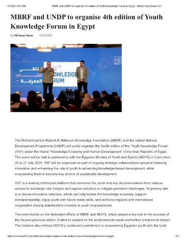 7/16/25, 9:41 AM MBRF and UNDP to organise 4th edition of Youth Knowledge Forum in Egypt - Middle East News 247