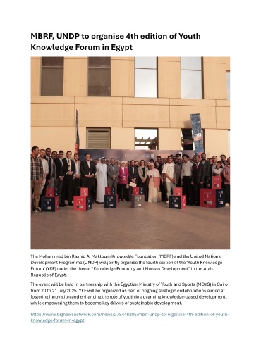 MBRF, UNDP to organise 4th edition of Youth