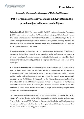 (MBRF) held a seminar to introduce the ‘Documenting the Legacy of Sheikh Rashid’ project.