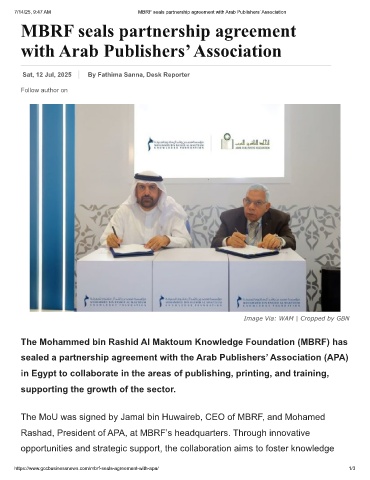 7/14/25, 9:47 AM MBRF seals partnership agreement with Arab Publishers’ Association
