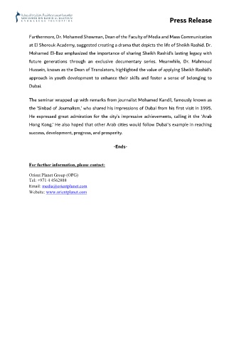 at El Shorouk Academy, suggested creating a drama that depicts the life of Sheikh Rashid. Dr.