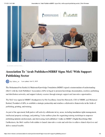 7/14/25, 9:47 AM Association to ’Arab PublishersMBRF signs MoU with support publishing sector | Web Release