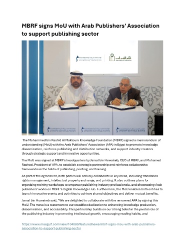 publishers’ works on MBRF’s Digital Knowledge Hub. Furthermore, the MoU enables both entities to