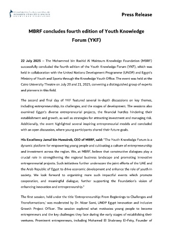 His Excellency Jamal bin Huwaireb, CEO of MBRF, said: “The Youth Knowledge Forum is a