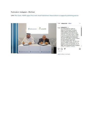 Publication: Instagram – Mid East Link: Mid-East: MBRF signs MoU with Arab Publishers’ Association to support publishing sector