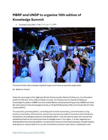 the tenth edition of the Knowledge Summit on 19 and 20 November 2025 at the Dubai World Trade