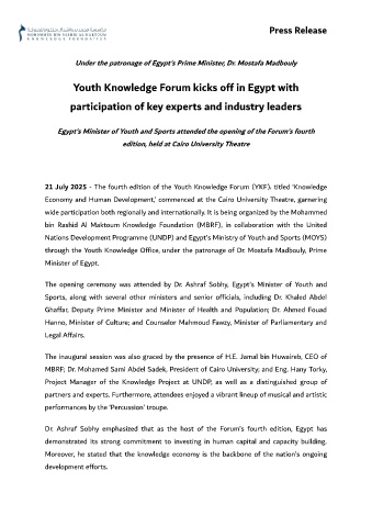 21 July 2025 - The fourth edition of the Youth Knowledge Forum (YKF)، titled ‘Knowledge