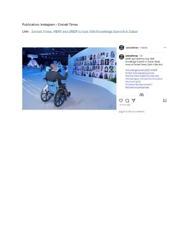 Publication: Instagram – Emirati Times Link: - Emirati Times: MBRF and UNDP to host 10th Knowledge Summit in Dubai