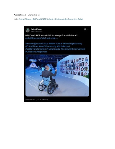 Publication: X – Emirati Times Link: Emirati Times: MBRF and UNDP to host 10th Knowledge Summit in Dubai