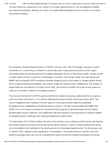 7/3/25, 10:22 AM MBRF and UNDP organize final phase of ‘Knowledge Journey in Kuwait’ to prepare leaders of tomorrow - Middle East News 247