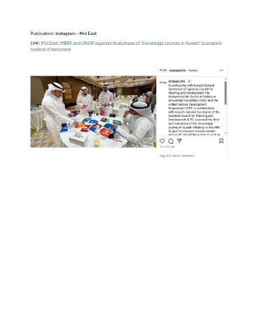 Publication: Instagram – Mid East Link: Mid East: MBRF and UNDP organize final phase of ‘Knowledge Journey in Kuwait’ to prepare leaders of tomorrow