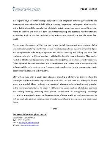 cooperation among Arab nations, while presenting an effective model for youth empowerment as